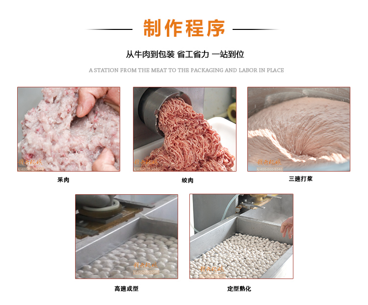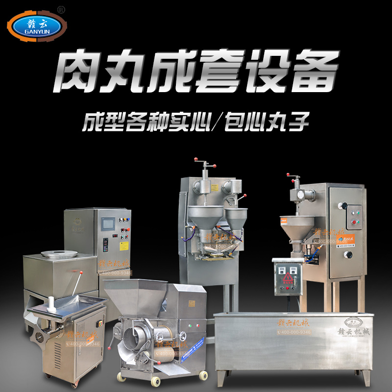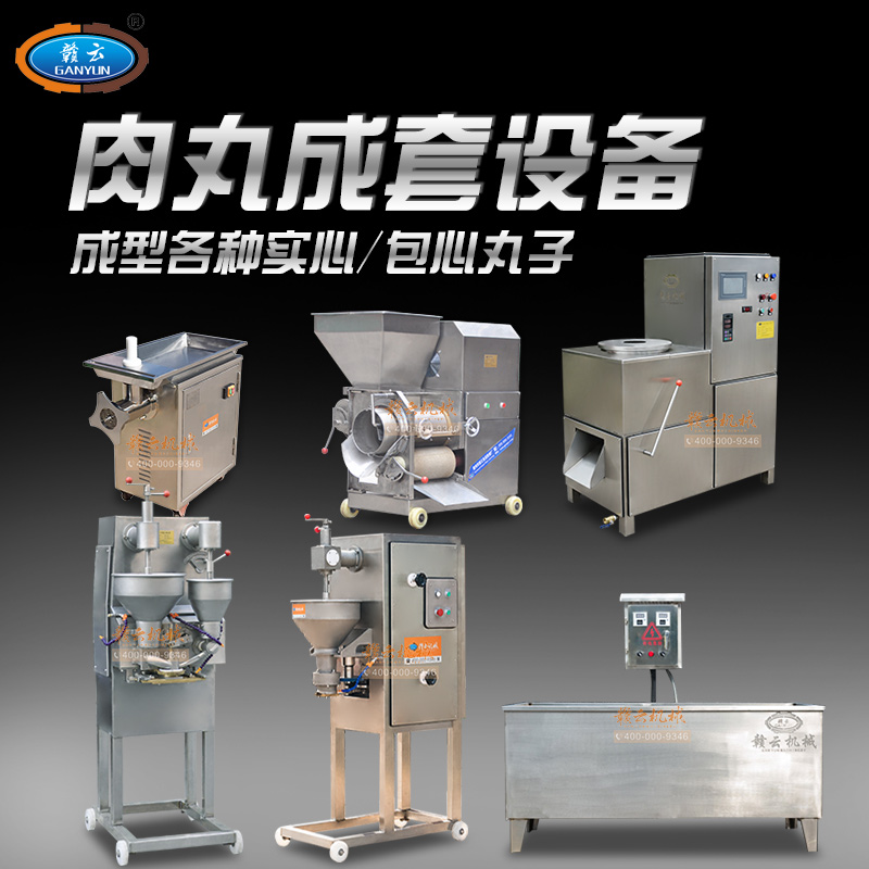 實心肉丸成套設備,包心肉丸成套設備一體組合,能生產新鮮各式實心肉丸,包心肉丸,如實心豬肉丸、魚丸,潮汕牛肉丸,蝦丸蟹丸等各種實心丸子,及福州魚丸、包心豬肉丸,包心牛肉丸等各式包心肉丸等,本套設備有絞肉機、采肉機、制冷三速打漿機、單刀高速多功能成型機、包心肉丸成型機和熟化水槽。
