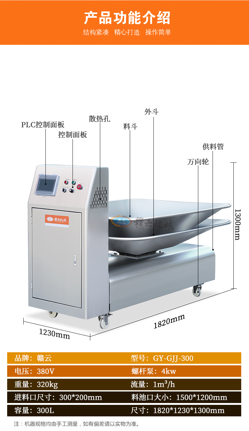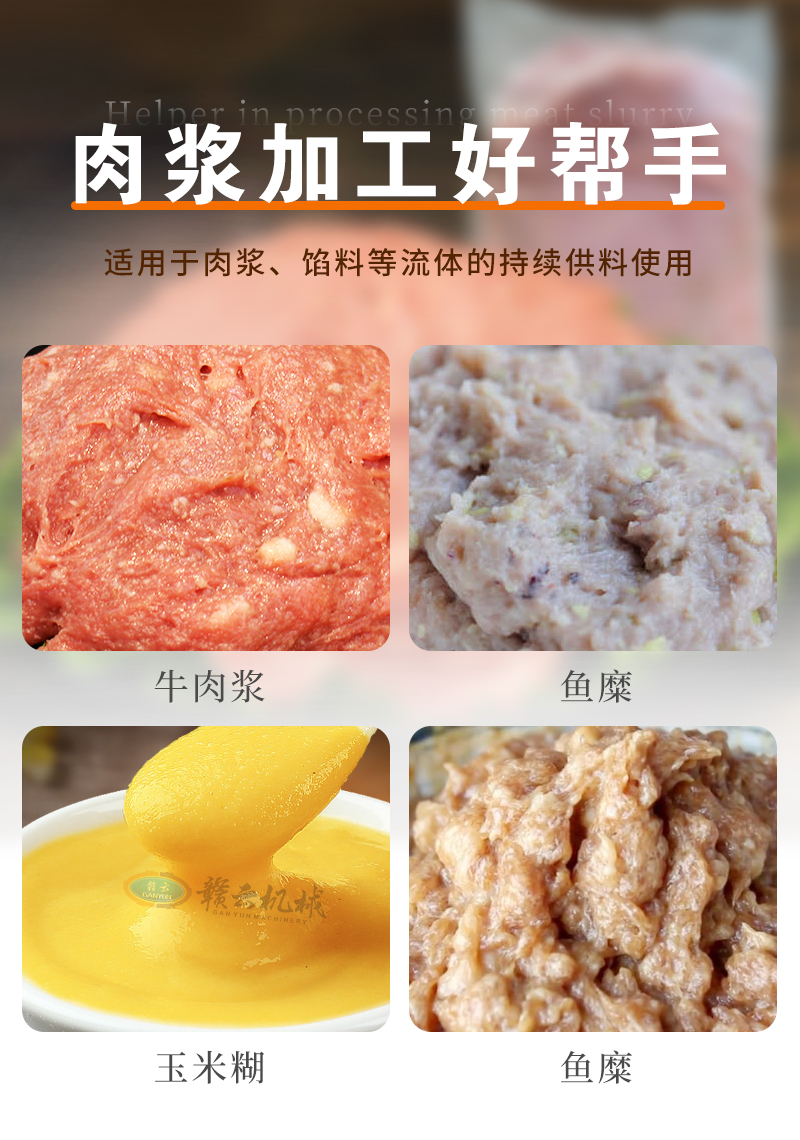 適用于肉漿、餡料等流體的持續(xù)供料使用。
